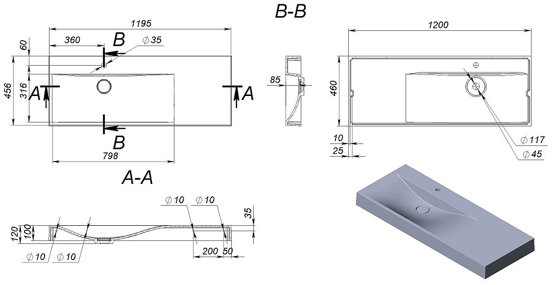 Catido Optimal Left 120x45 umywalka nablatowa naszafkowa marmur mineralny